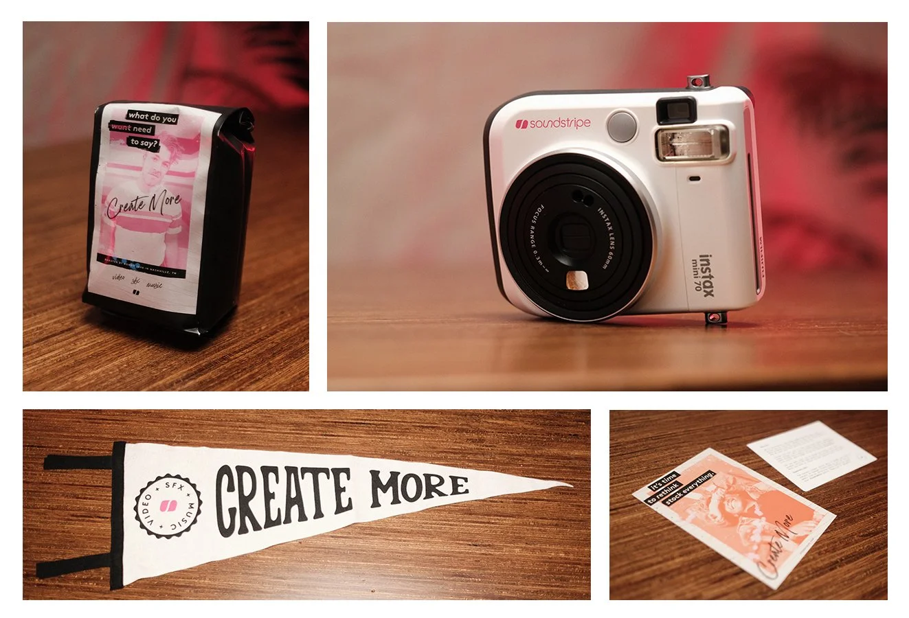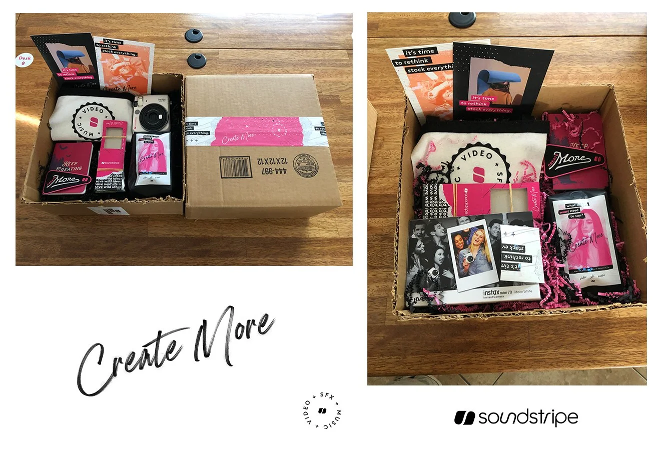 In the fall of 2020, Soundstripe added stock video to their product mix as another form of media to support their customer base— the largest change to their product line since the start of the company. Thus, an integrated campaign was created for the product launch including new static and motion ads for organic and paid social (teaser content, launch week, and product marketing), an integrated social media campaign called the Create More Challenge, and customized product boxes for Instagram and YouTube influencers. This was a massive, collaborative department endeavor requiring the talent and sweat of a number of individuals.